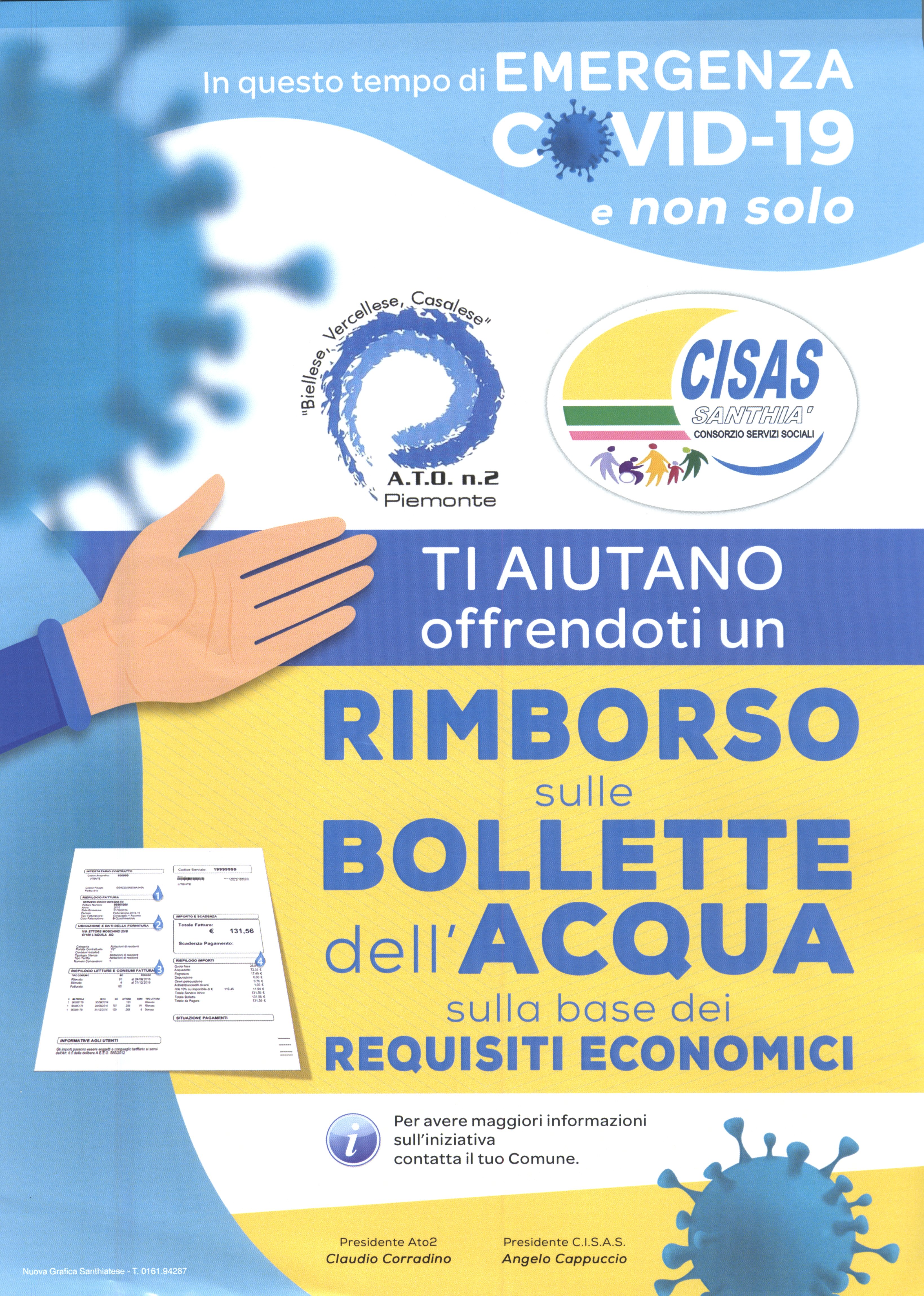 Si informa che il Consorzio C.I.S.A.S. di Santhià ha riaperto i termini per la presentazione delle domande di agevolazione per il pagamento delle bollette del Servizio Idrico Integrato riferite all'ultimo semestre del 2021.