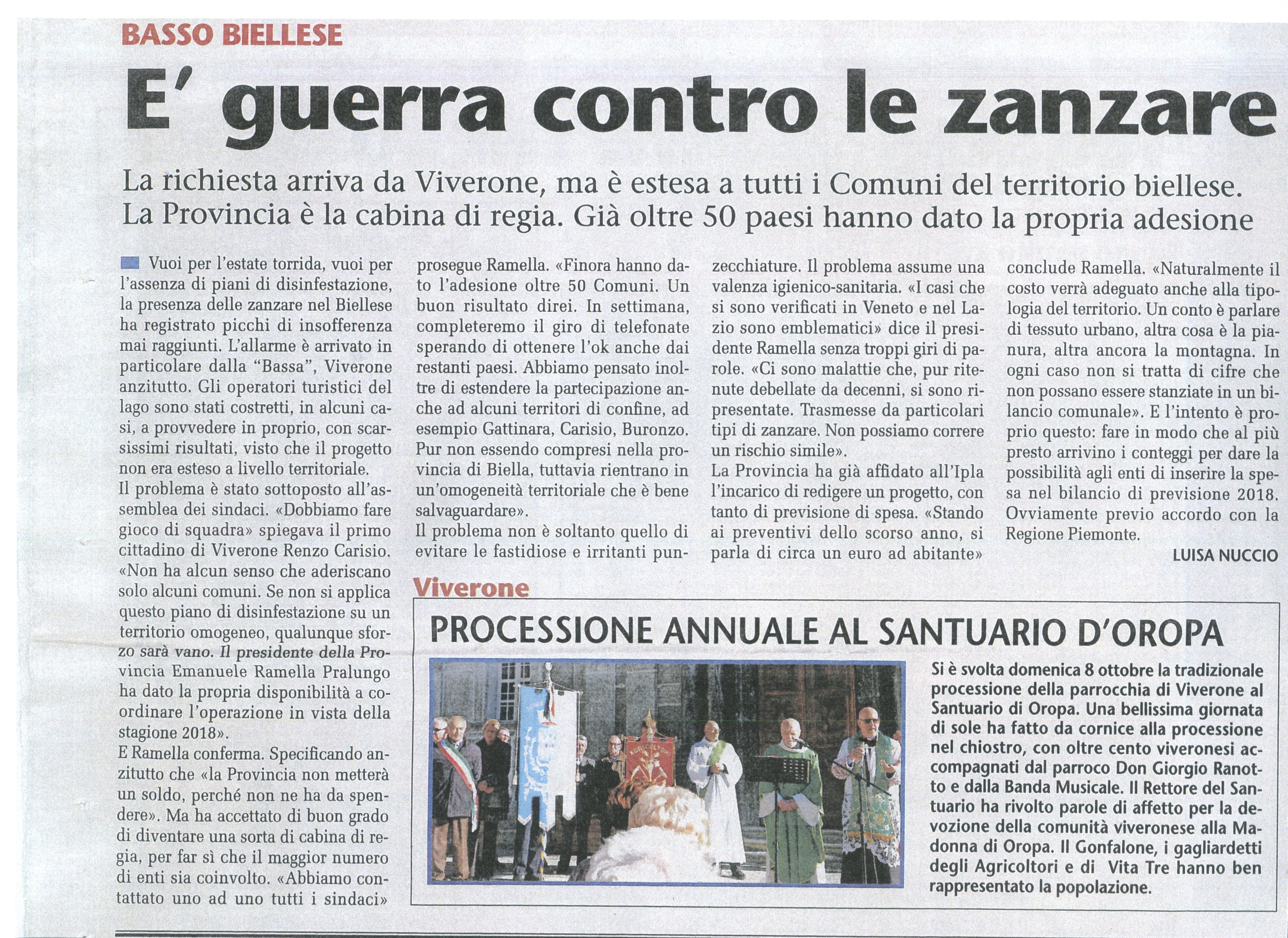 Dal Giornale "Il Biellese" di martedì 17 ottobre 2017