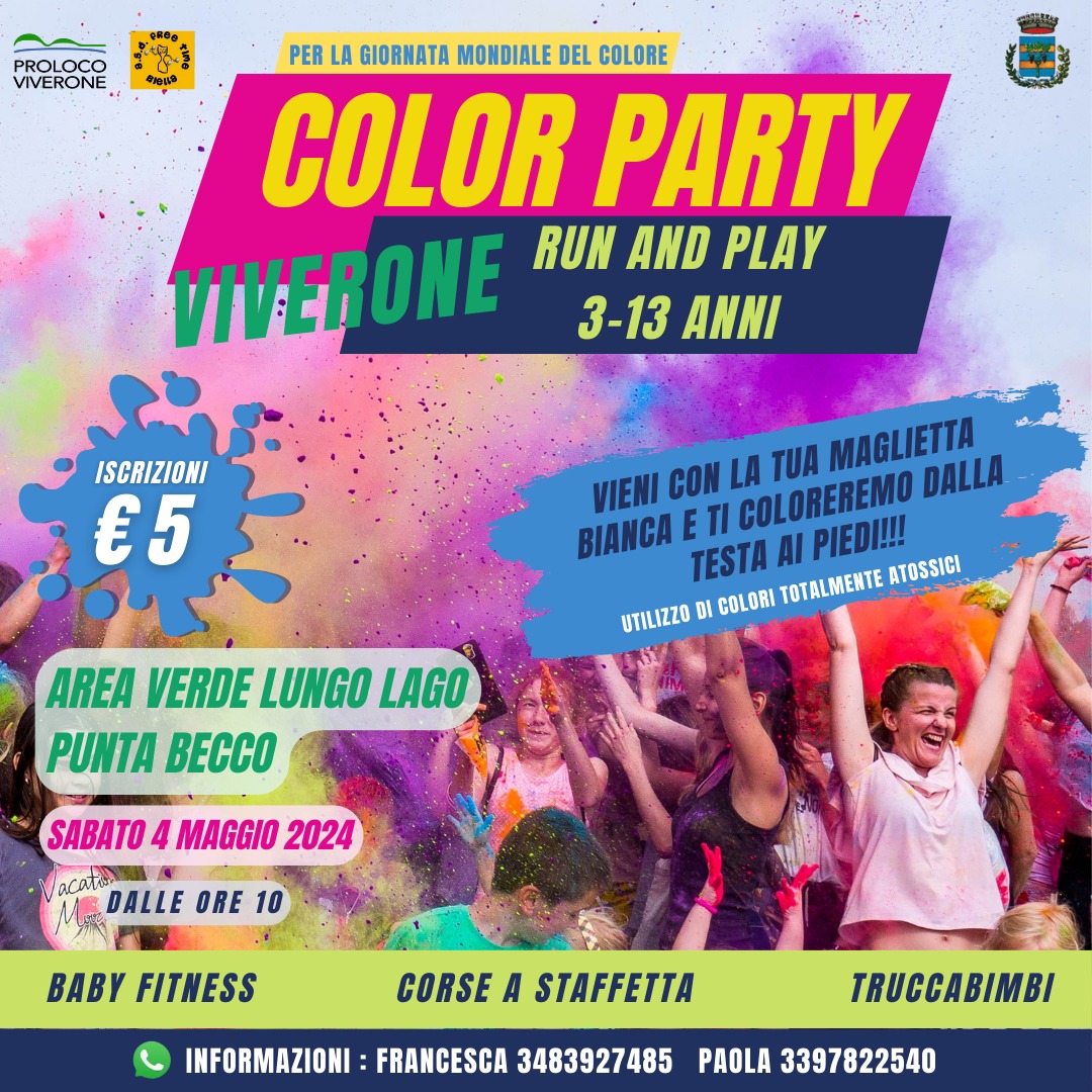 In occasione della giornata mondiale del colore, la Proloco di Viverone, in collaborazione con Free Time, organizza il COLOR PARTY Immagine rimossa.Immagine rimossa.