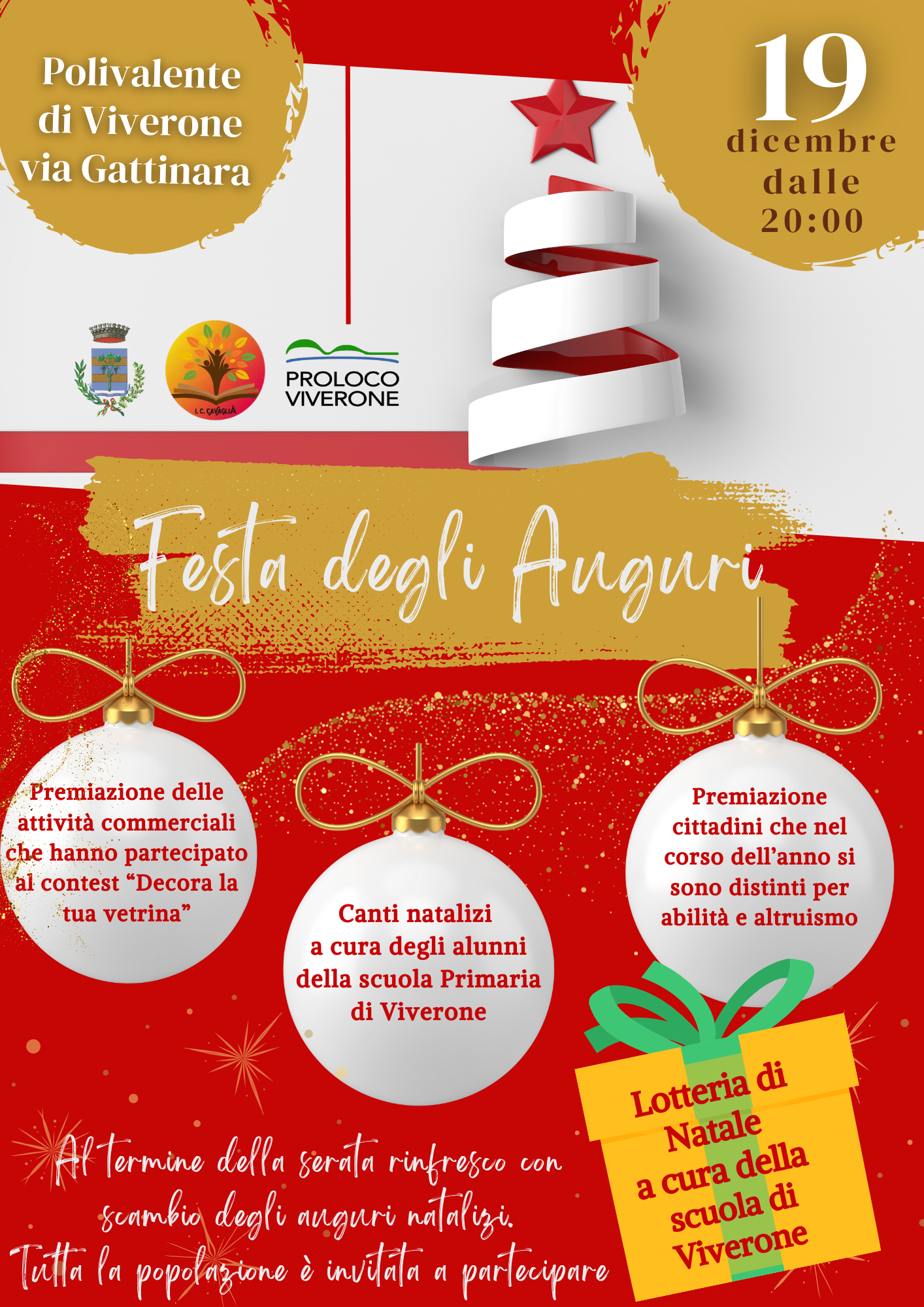 Questo comune, in collaborazione con alunni ed insegnanti della scuola di Viverone e con la Pro Loco di Viverone, organizza una serata di festa per lo scambio degli auguri natalizi giovedì 19 dicembre dalle ore 20.00 presso il Polivalente di Viverone, sito in via Gattinara.